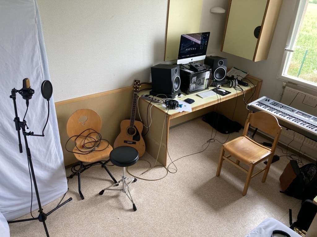 En juillet 2022, je m’enferme pendant près de trois semaines avec les ados de la colo « Paroles et musique » proposée pour le CCAS des Hauts de France. Daphné Swan a accompagné l’écriture des textes et moi, la composition musicale. Nous avons tous deux également préparé la joyeuse troupe a réaliser son premier live.